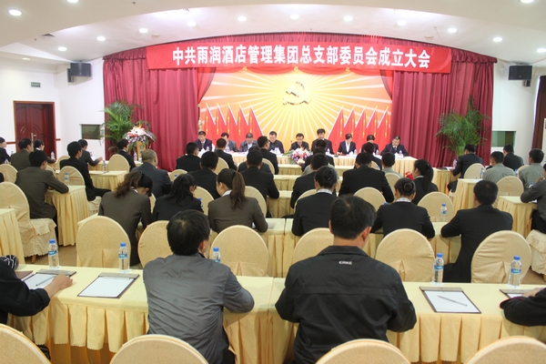 大會(huì)在莊嚴(yán)的國(guó)歌聲中拉開帷幕,雨潤(rùn)控股集團(tuán)黨辦副主任張傳雙宣讀了雨潤(rùn)控股集團(tuán)黨委《關(guān)于成立中共雨潤(rùn)酒店管理集團(tuán)總支部委員會(huì)的批復(fù)》。雨潤(rùn)控股集團(tuán)黨委副書記兼紀(jì)委書記顏迪明代表雨潤(rùn)控股集團(tuán)黨委對(duì)酒店管理集團(tuán)總支部委員會(huì)的成立表達(dá)了祝賀,他在發(fā)言中指出雨潤(rùn)從1993年創(chuàng)業(yè)之初不足200人的小企業(yè)成長(zhǎng)為今天位居中國(guó)企業(yè)500強(qiáng)第118位,中國(guó)民營(yíng)企業(yè)100強(qiáng)第8位的控股集團(tuán)性大企業(yè),雨潤(rùn)的成功完全得益于黨的改革開放政策,得益于黨和政府的關(guān)懷與支持,是黨建助推著雨潤(rùn)成為中國(guó)民營(yíng)企業(yè)的先行者,集團(tuán)的黨建從最初的三人黨小組發(fā)展為157個(gè)黨組織、近4000名黨員,黨員已成為雨潤(rùn)控股集團(tuán)的重要人才資源,其先鋒模范與戰(zhàn)斗堡壘作用在集團(tuán)的經(jīng)營(yíng)發(fā)展中功不可沒。同時(shí),他也表示雨潤(rùn)酒店管理集團(tuán)總支部委員會(huì)的成立是集團(tuán)化企業(yè)黨建管理模式的創(chuàng)新,他希望酒店管理集團(tuán)嚴(yán)格執(zhí)行集團(tuán)與駐地雙重管理,依靠與協(xié)調(diào)地方黨組織力量,實(shí)施組織覆蓋、工作覆蓋,圍繞企業(yè)經(jīng)營(yíng)助推企業(yè)更好更快地發(fā)展。